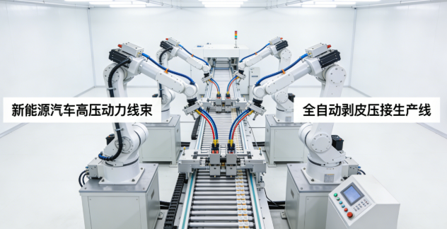 随着全球汽车产业向电动化、智能化加速转型,800V高压平台已成为高端新能源汽车的“标配”。作为整车电力传输的“大动脉”,高压动力线束的安全性、一致性与生产效率直接关乎车辆的续航表现与安全底线。2025年底,国内某知名新能源车企(以下简称“客户”)面临产能激增与工艺升级的双重挑战,亟需引入一套具备高度柔性、极致精度与全流程追溯能力的高压动力线束全自动剥皮压接生产线。