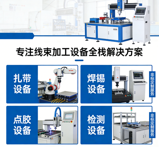 中工自动化专注线束加工设备全栈解决方案,提供扎带、焊锡、点胶、检测等智能设备及非标定制服务。融合智能与精密控制技术,从产线规划到运维护航,助力企业实现高效、精准的智能化升级。