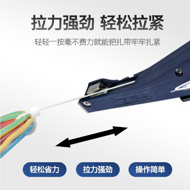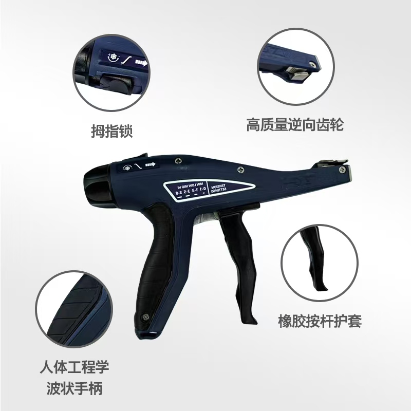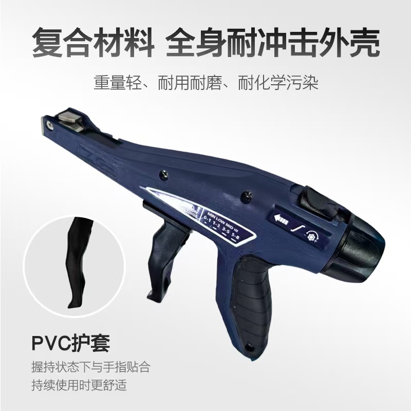 握把处防滑纹理处理,长时间使用不累手;扳机行程短、反馈灵敏,新手也能迅速上手。支持标准宽度4.8mm~9mm尼龙扎带,兼容性强,满足多行业通用需求。